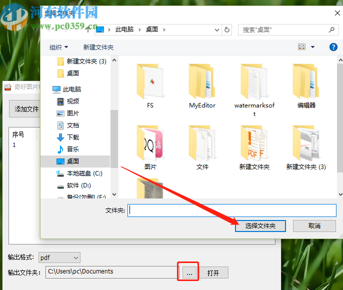 4.选择好图片需要转换的格式之后,下一步我们点击输出文件夹右边的三点按钮,点击之后在出现的界面中选择想要保存的输出文件夹。