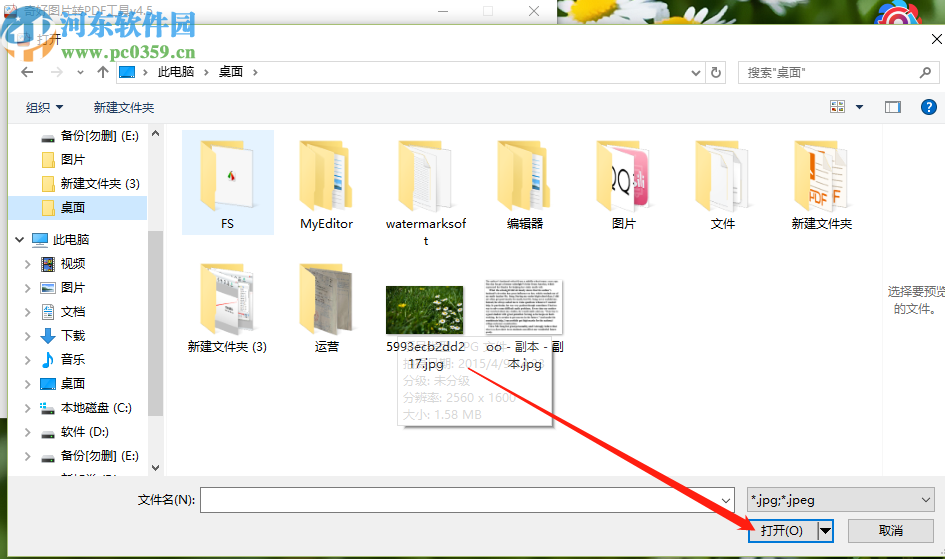 2.点击添加之后会打开一个选择文件的界面,在这个界面中我们选择目标图片文件之后点击右下角的打开按钮即可。