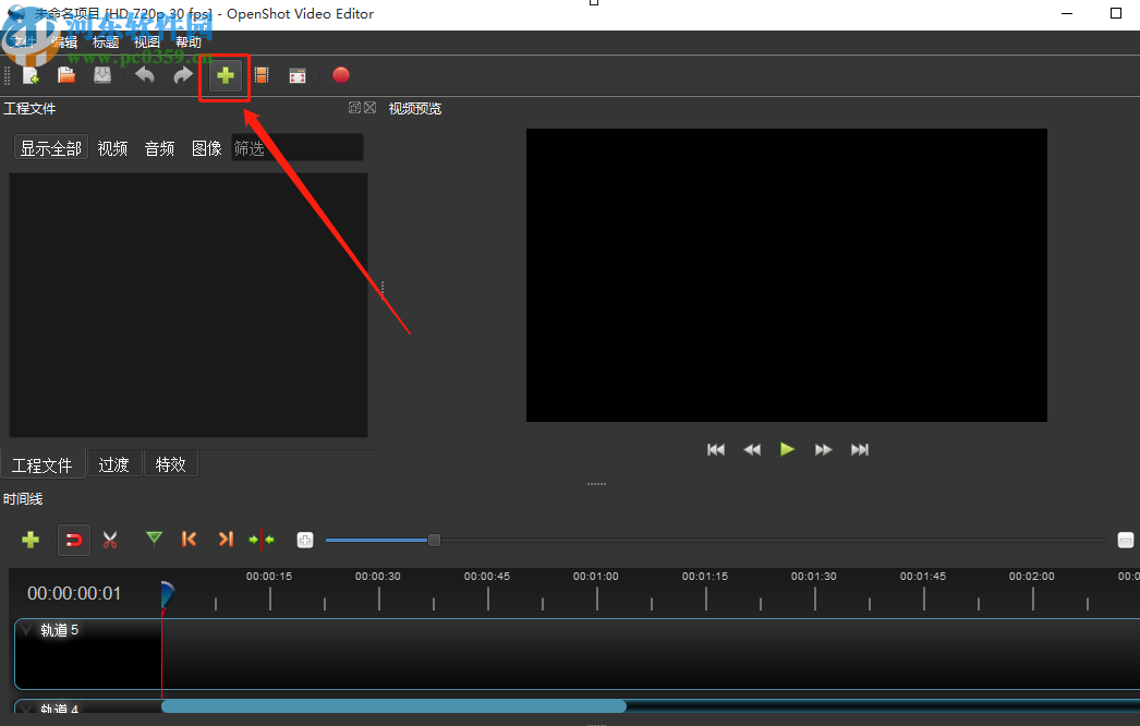 1.首先第一步我们打开软件之后在界面的左上方点击绿色的添加按钮,然后添加需要编辑的视频文件。