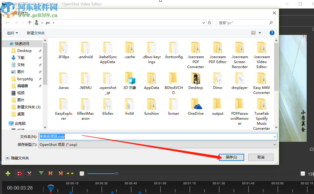 7.点击项目另存为之后在出现的储存界面中设置好项目储存名称点击保存之后,下次直接导入这个项目就可以继续开始编辑操作了。