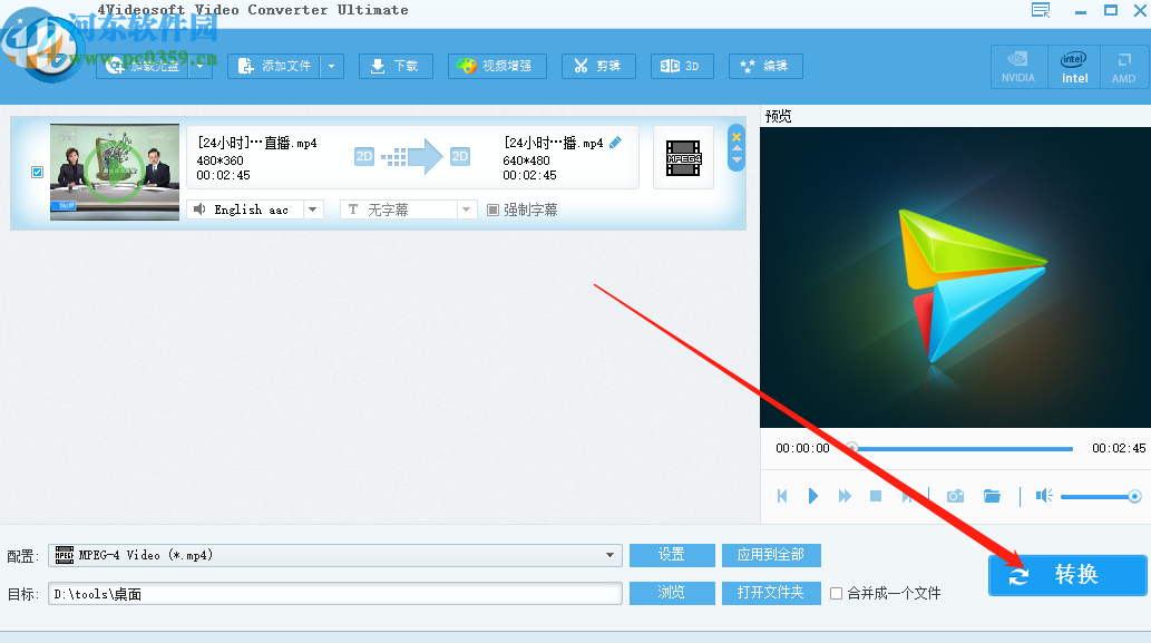 6.点击应用按钮就将增强的效果应用到视频当中了,返回到软件主界面之后点击界面右下角的转换按钮即可将增强之后的视频转换保存下来。