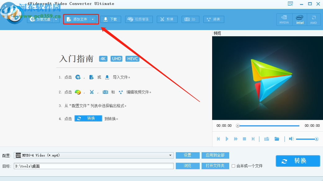1.首先第一步我们打开软件之后点击上方的添加文件按钮,点击之后可以在出现的位置选项想要添加的视频文件。
