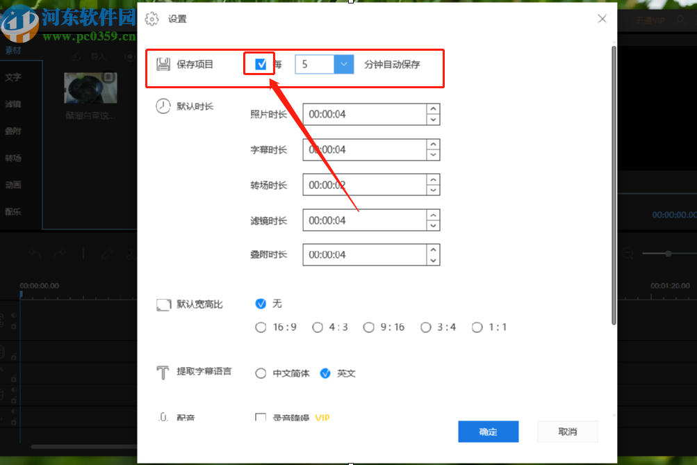 3.进入到软件的设置界面之后,我们在界面中勾选保存项目选项中的小方框,启用自动保存的功能。