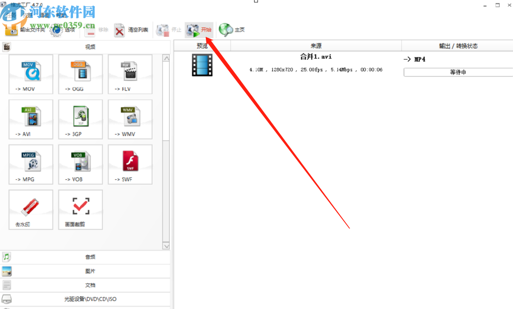 7.点击确定按钮之后回到软件的主界面,然后我们点击界面上方的开始按钮就可以开始裁剪视频并保存下来了。