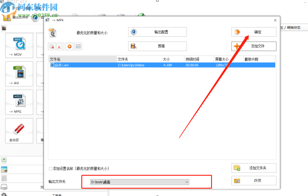 6.点击保存裁剪操作之后会进入到转换输出界面,在这个界面可以看到视频的输出保存位置,设置完成之后点击界面右上角的确定按钮。