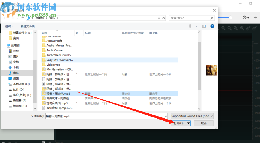 2.点击打开之后下一步在出现的界面中选择要调整反向的音频文件,选中之后点击右下角的打开按钮即可。