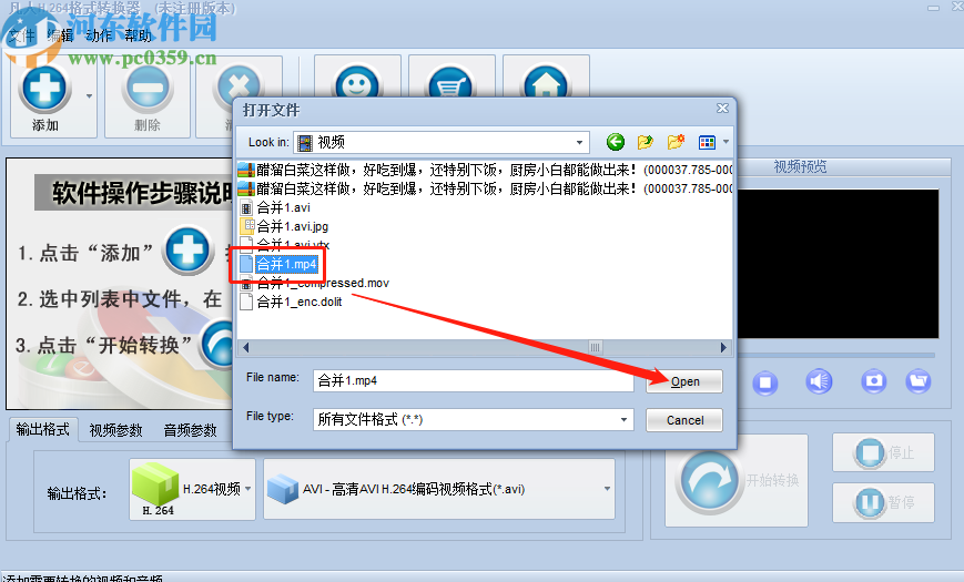 2.选择添加一个文件之后就会打开一个选择文件的界面了,在界面中选中想要转换的MP4格式即可进行下一步操作。
