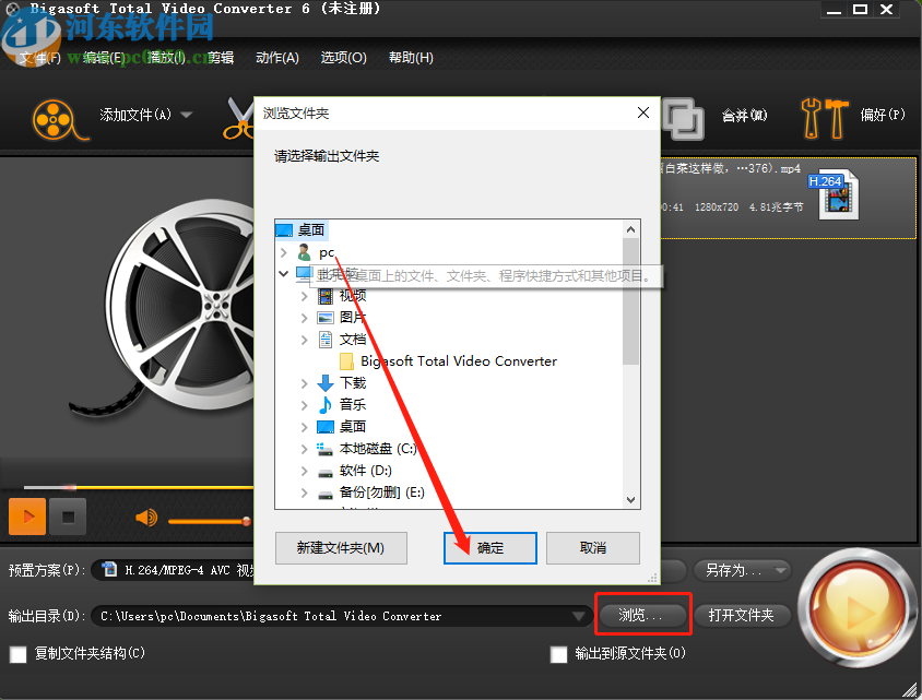 6.点击确定按钮之后回到主界面中,点击主界面中的浏览按钮,在出现的界面中可以选择剪切视频的输出保存位置。