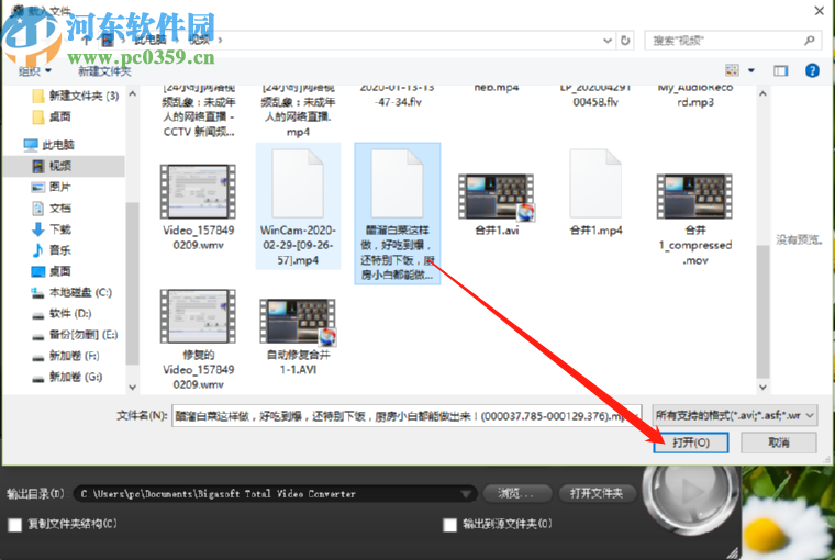 2.点击添加文件功能之后,在界面中选中目标视频文件,然后点击右下角的打开按钮就可以成功选择视频到软件中了。