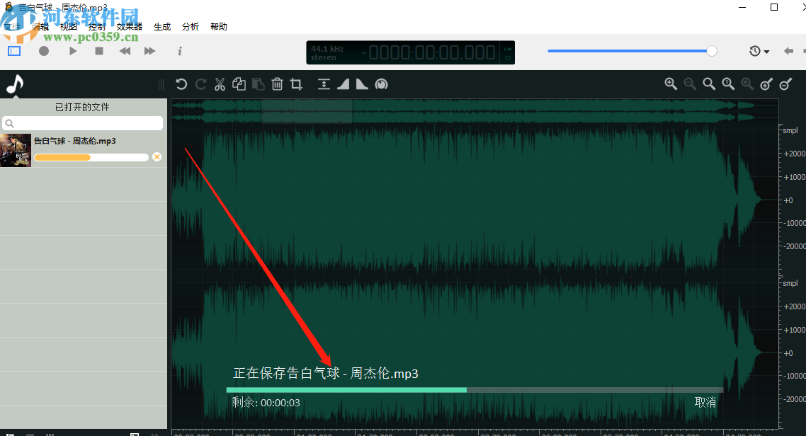 7.点击保存之后界面中会显示正在保存文件的进度,我们只需要等待软件完成音频保存操作就可以了。