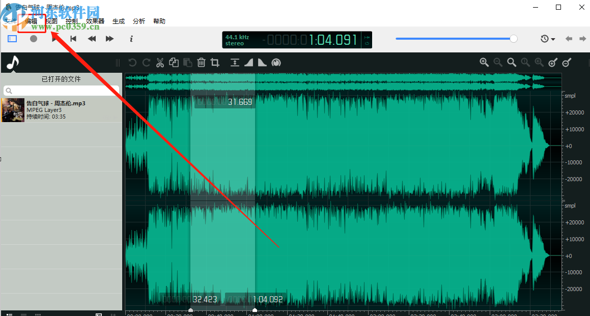 3.点击打开按钮之后音频就成功添加到软件中了,然后我们点击左上方的编辑这个功能选项卡。