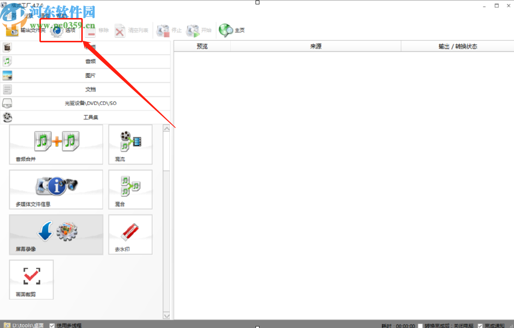 1.首先第一步我们打开软件之后,在界面上方找到选项这个功能按钮,然后点击选项进入到软件的选项设置界面。