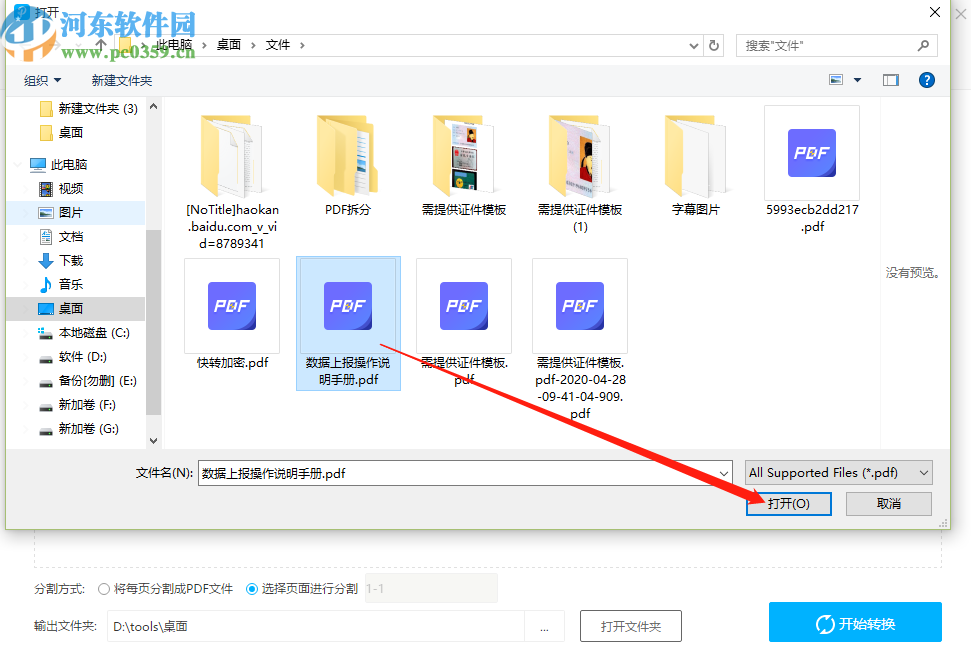3.点击选择文件按钮之后会打开一个选择文件的界面,我们选中目标PDF文件之后点击打开按钮进入到下一步。