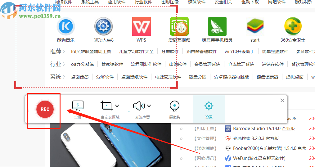 4.录制区域大小设置完成之后移动到想要录制的位置,点击操作界面中的REC按钮就可以开始录制操作了。