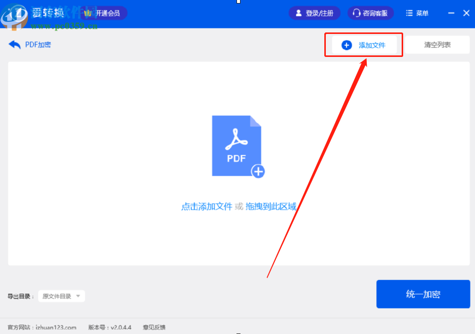 2.进入到PDF压缩功能模块之后,我们点击界面右上角的添加文件按钮,准备添加想要压缩的PDF文件。