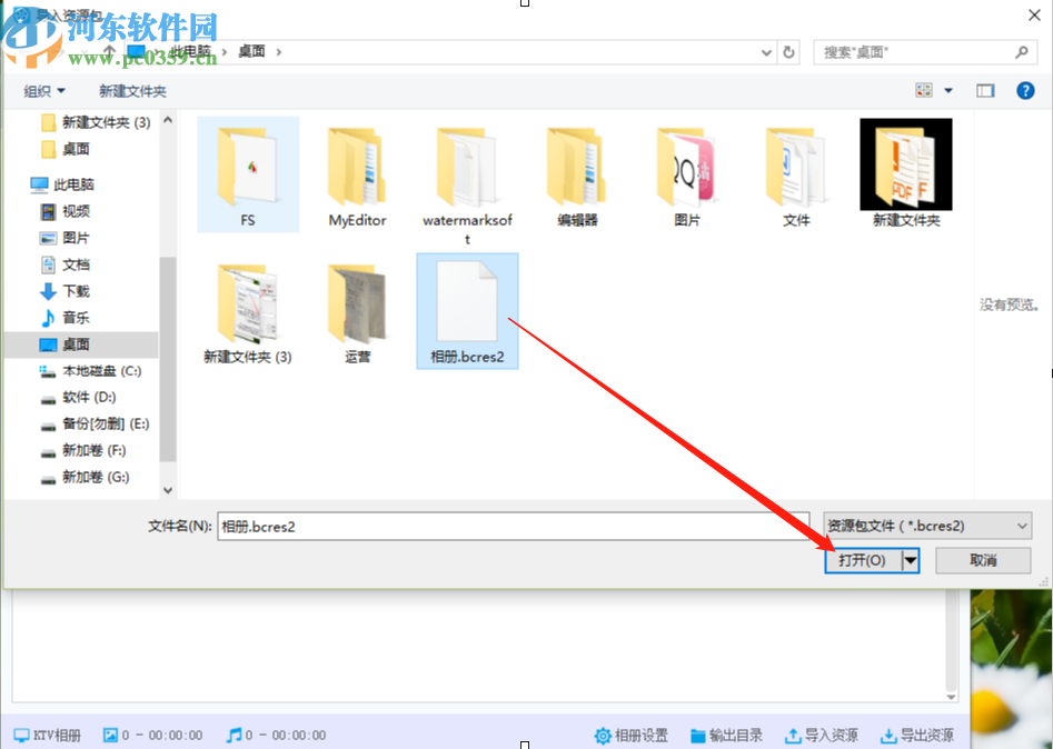 2.点击导入资源之后就会出现一个选择文件的界面了,我们在其中选中目标资源文件之后,点击右下角的打开按钮即可。