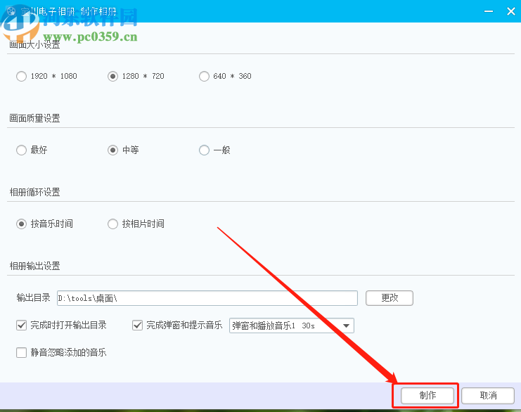 6.最后在制作相册的参数设置界面,根据用户自己的需求进行调整参数,没有特殊需求的用户使用默认的即可,点击制作按钮就可以开始制作了。