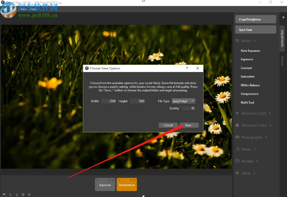 7.点击另存为之后会出现下图所示的界面,我们可以看到图片的一些输出保存参数,确认之后点击Save按钮即可进行储存。