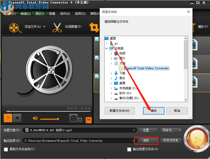 3.视频添加进来之后,我们先点击输出目录右边的浏览按钮,点击这个浏览按钮之后在出现的界面可以选择文件合并后的输出保存位置。