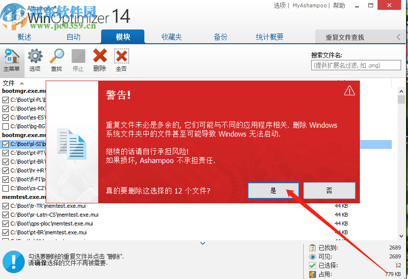 5.点击删除之后会出现下图所示的一个警告界面,显示了删除文件有一定的风险,然后我们点击“是”按钮就可以开始删除操作了。