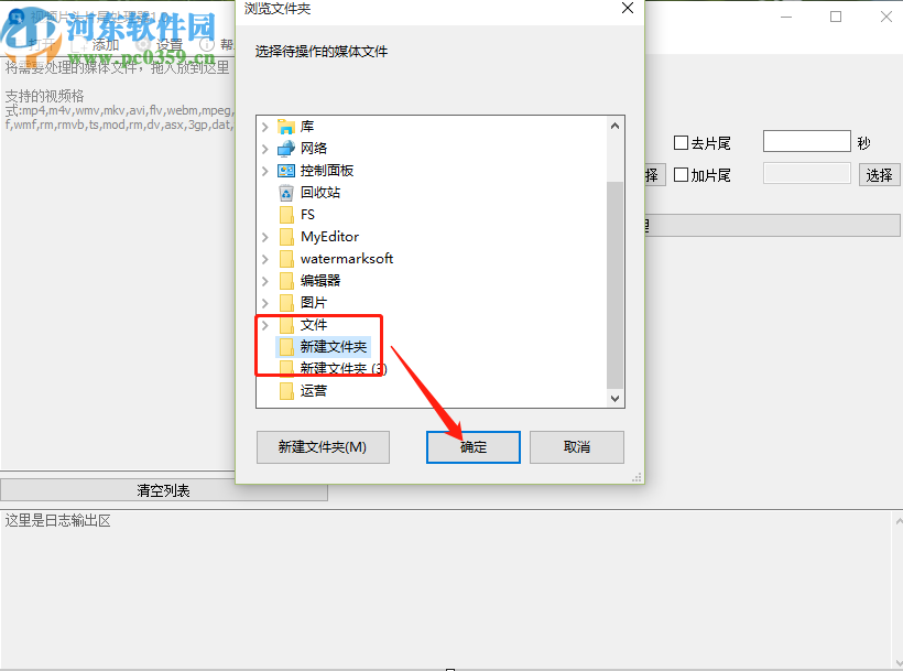 2.点击这个媒体文件之后就会打开一个选择文件的界面了,我们在其中选中目标视频文件所在的文件夹之后,点击确定按钮。