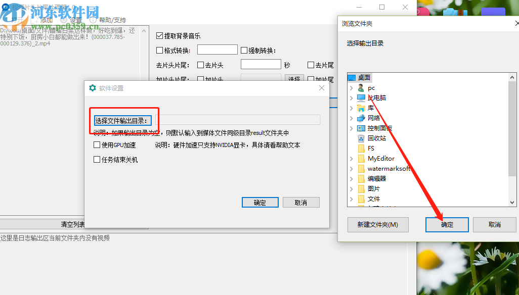 5.点击软件设置之后我们下一步在打开的设置界面,点击选择文件输出目录按钮,然后在打开的文件路径选择页面选择目录并点击确定按钮。
