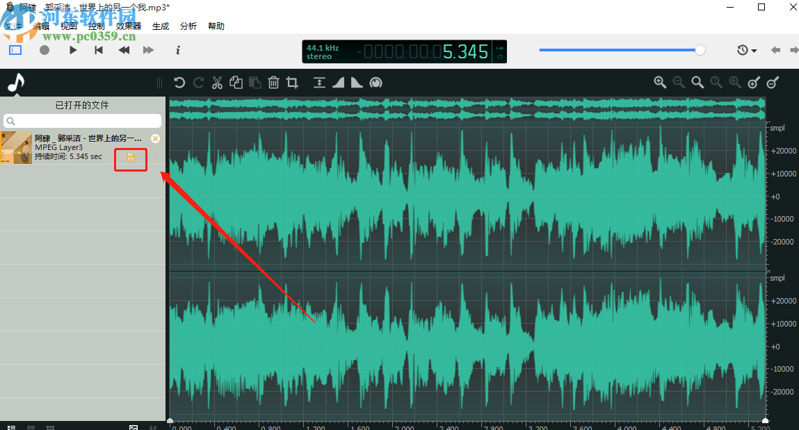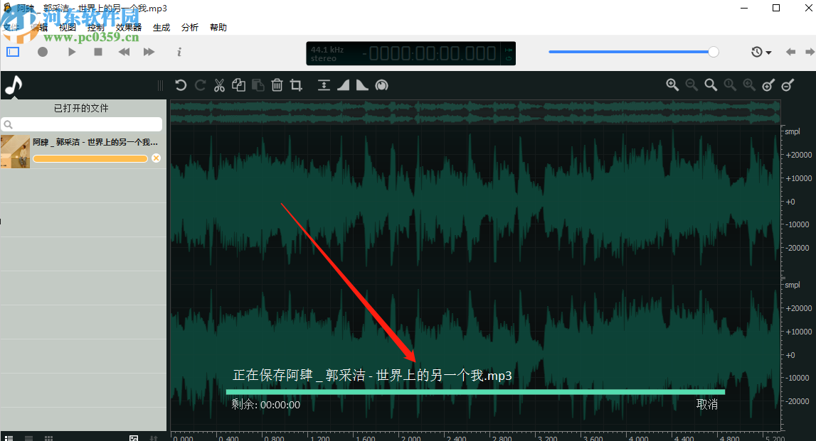 6.点击保存图标之后软件就会开始保存我们裁剪之后的音频片段,最后等到保存操作完成我们的裁剪操作也就完成了。