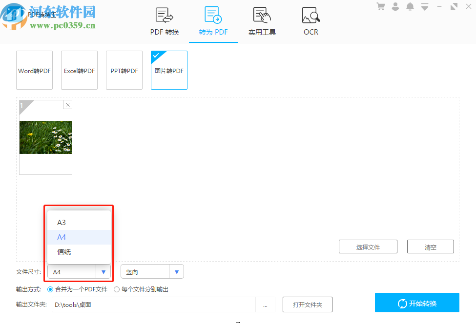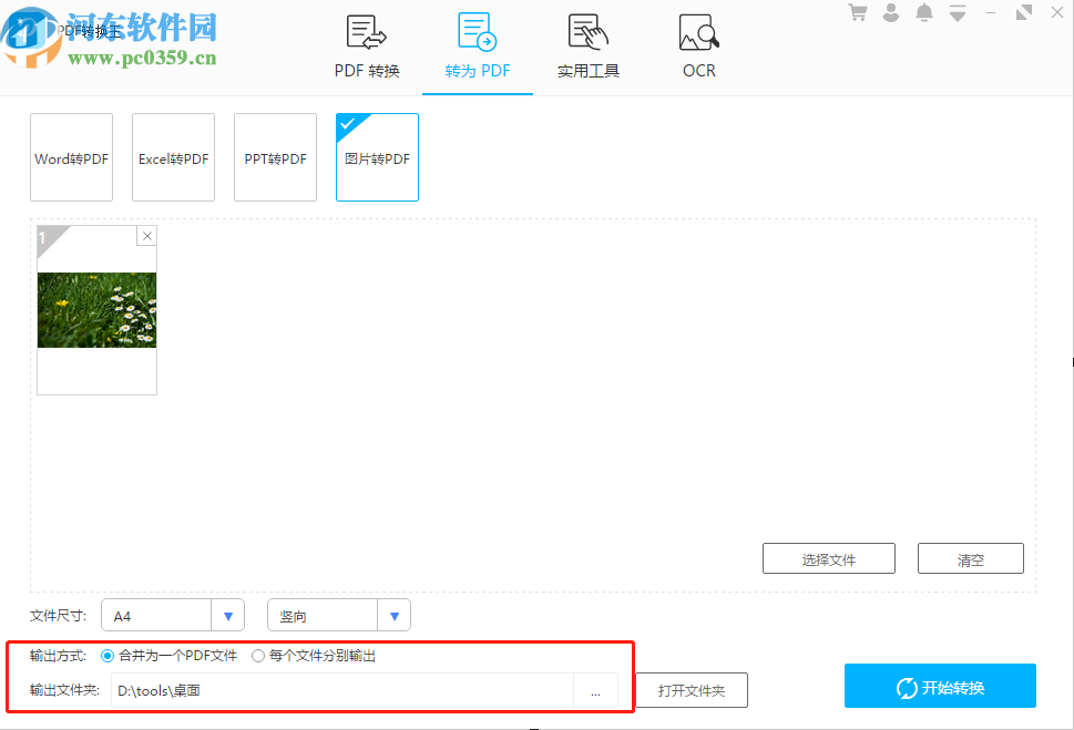 5.最后设置好以上转换参数之后,我们点击界面右下角的开始转换按钮就可以开始将图片转换成PDF文件的操作了。