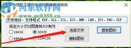 3.点击打开按钮之后我们可以看到选择的软件所在路径,然后在下方的尺寸选择位置即可选择想要提取保存的图标尺寸。