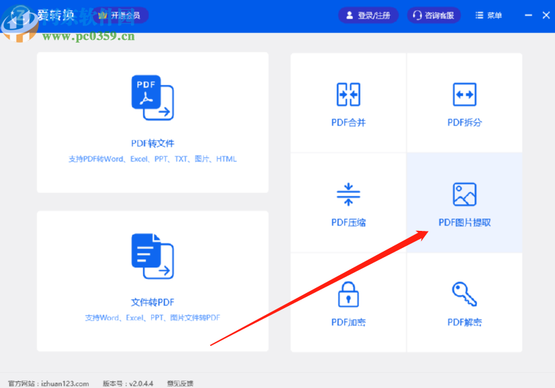 1.首先第一步我们打开软件之后在界面中找到PDF图片提取这个功能,找到之后点击进入到其中。