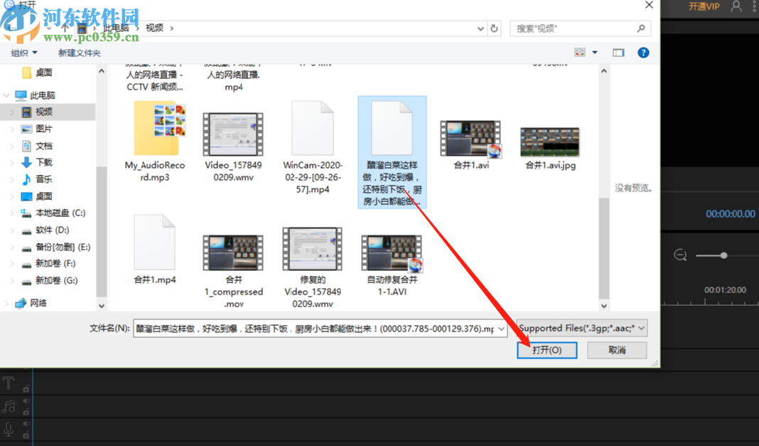 2.点击导入文件之后在打开的选择文件界面中,我们选择想要处理的视频文件之后的点击右下角的打开按钮即可。