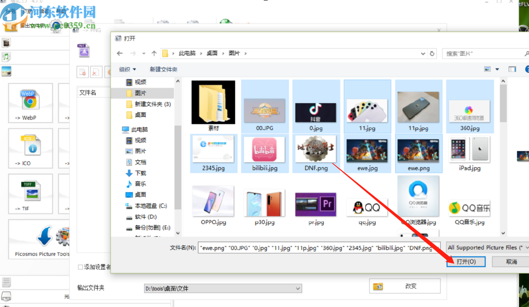 3.点击添加文件按钮之后,下一步在打开的选择文件界面中,选中想要转换的图片之后点击右下角的打开按钮。
