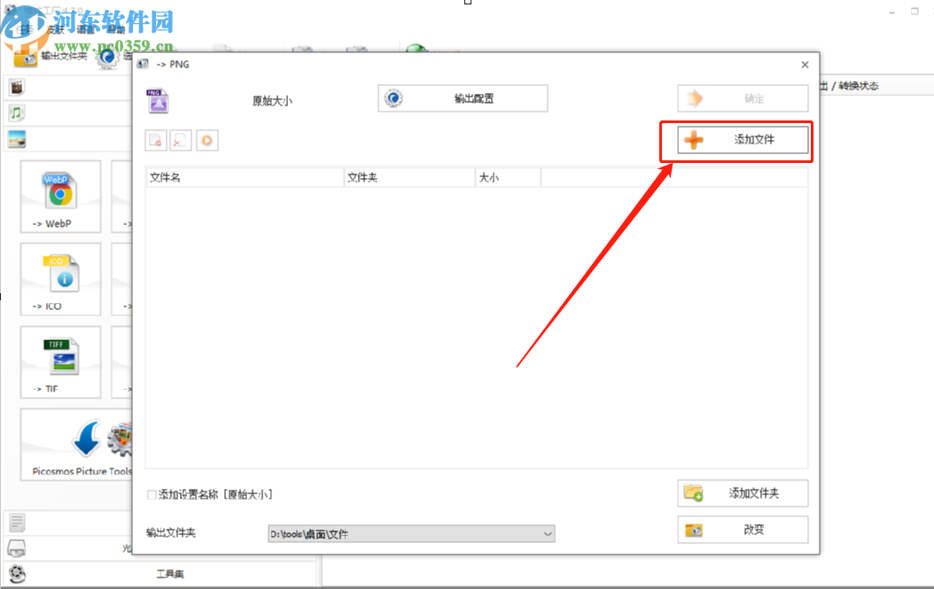 2.点击转换png之后进入到下图所示的界面,我们点击其中的添加文件按钮即可添加想要转换的图片文件。