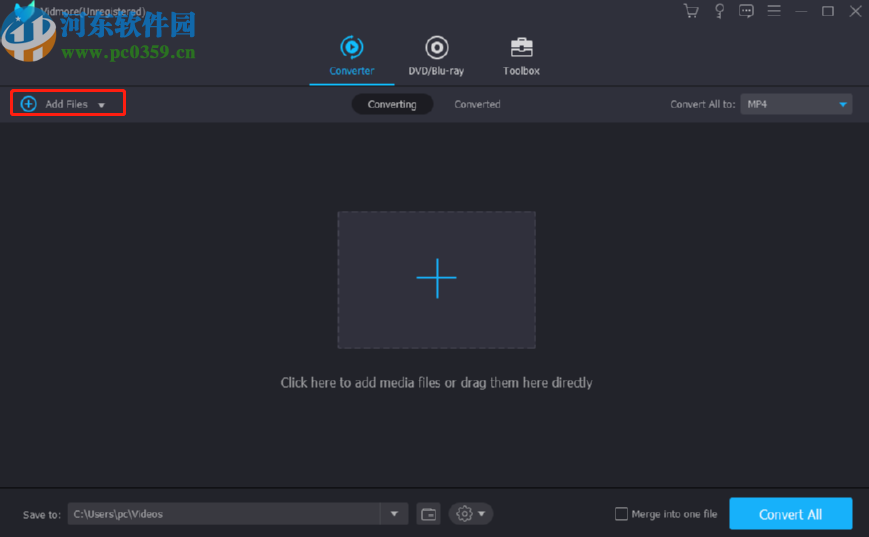 1.首先第一步我们打开软件之后在界面中点击添加文件按钮,如下图中框出的位置所示,点击之后可以选择添加文件。