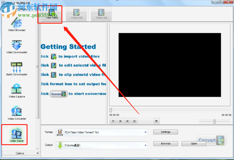 1.首先第一步我们打开软件之后在软件界面左边点击Video Maker功能,然后点击界面中的Add Video按钮。