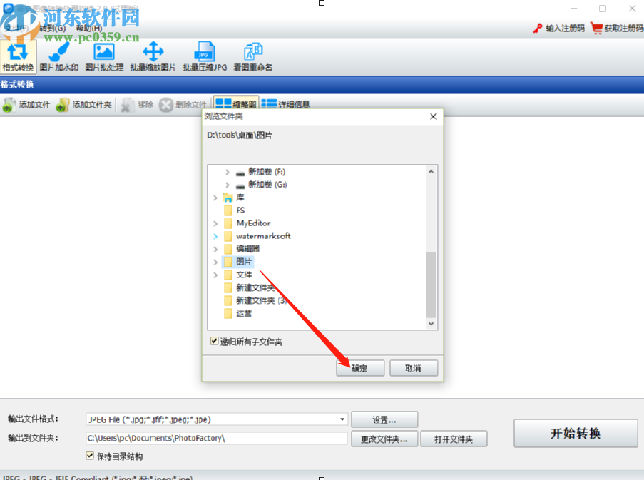 3.点击添加文件夹按钮之后,会打开一个选择文件的界面,我们在出现的界面中选择想要转换的图片所在的文件夹,选中之后点击确定按钮。