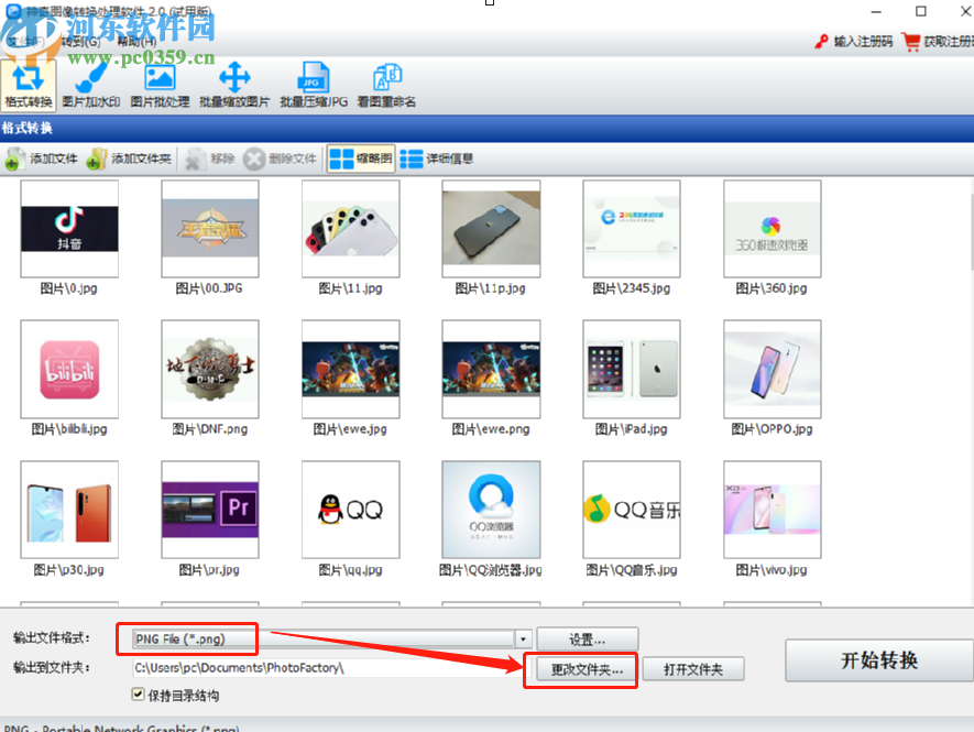 5.选择好想要转换的png格式之后,我们点击界面中的更改文件夹按钮,可以对文件转换的输出路径进行更改。
