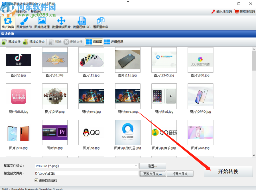 7.最后设置好转换输出的文件夹之后,点击界面右下角的开始转换这个功能按钮就可以开始批量转换png图片的操作了。