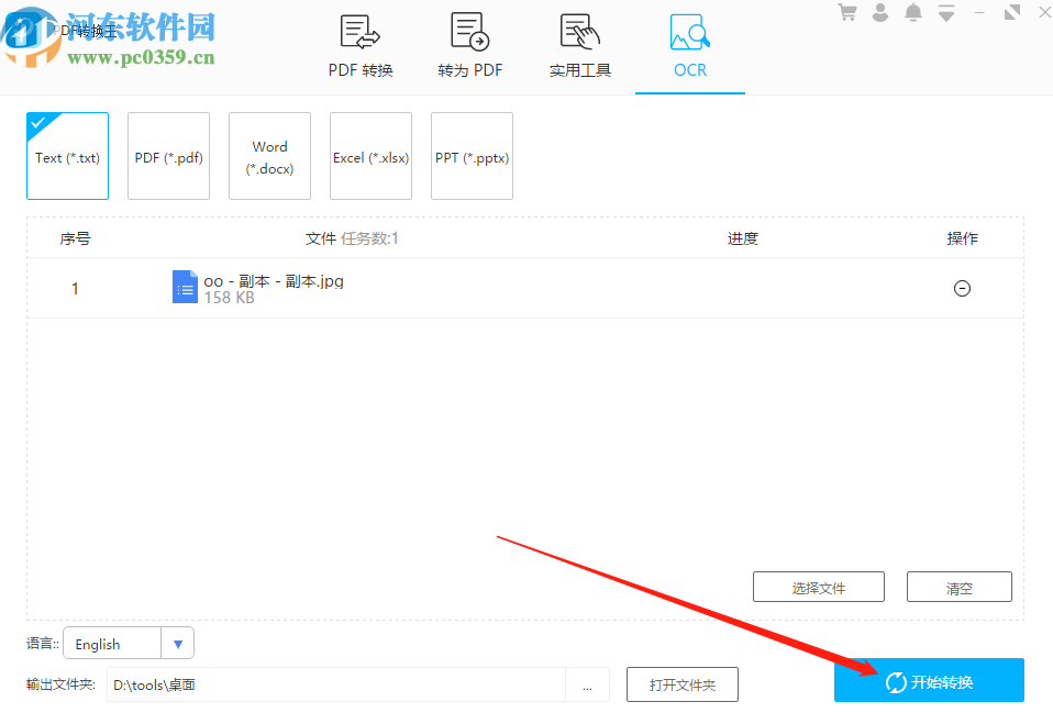5.设置好识别储存位置之后点击界面右下角的开始转换按钮就可以开始识别图片中文字的操作了。