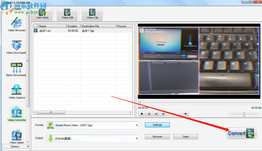 5.选择好自己想要转换的视频格式之后,我们点击界面右下角的Convert这个转换按钮就可以开始将AVI转换成3gp视频的操作了。