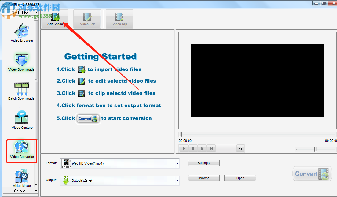1.首先第一步我们打开软件之后在左边选择Video Convert这个视频转换功能,选择之后点击上方的Add Video选项,准备添加视频。