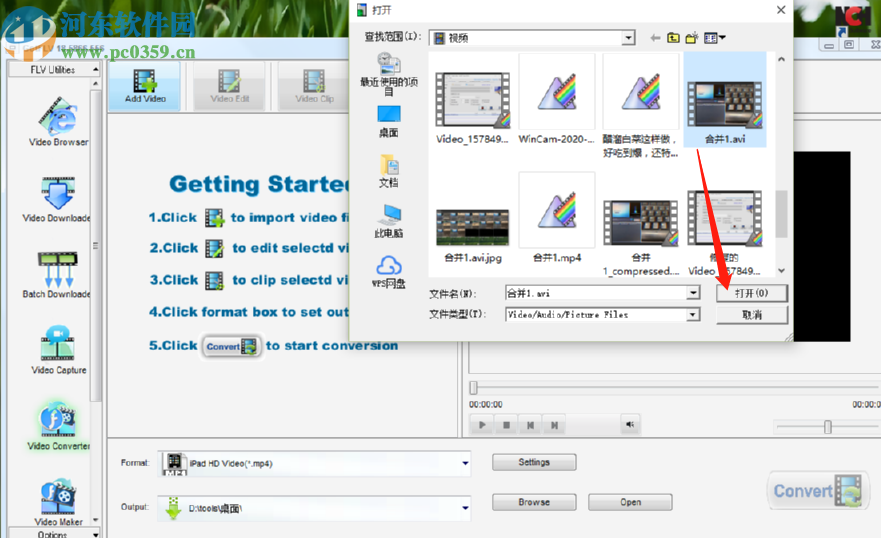 2.点击添加视频按钮之后下一步在出现的选择视频文件界面中,选中目标视频文件之后点击下方的打开按钮即可。