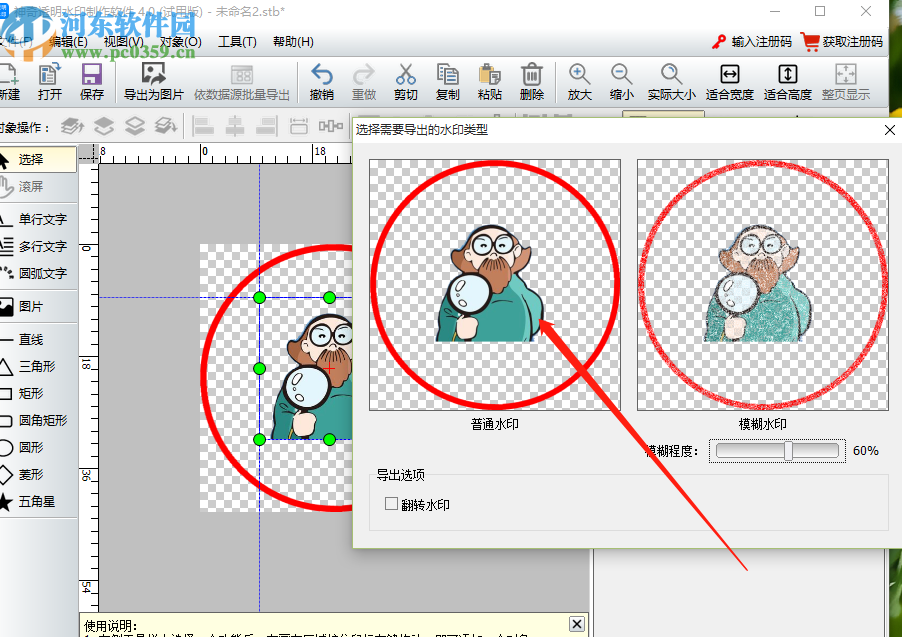 6.点击导出之后我们在出现的选择中选择普通水印或者模糊水印,选择自己需要的之后点击即可。