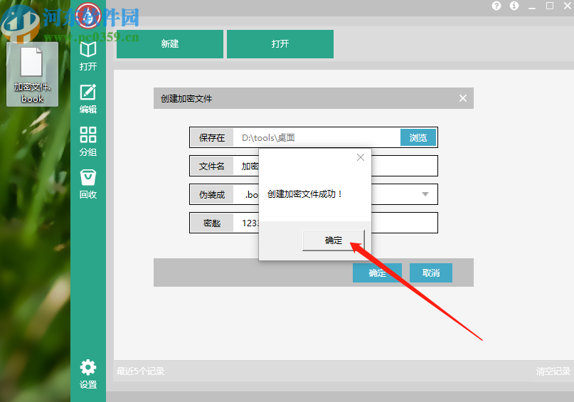 5.最后点击确定按钮我们在选择的储存路径中就可以看到创建的加密文件了,并且界面中会提示创建成功的窗口。