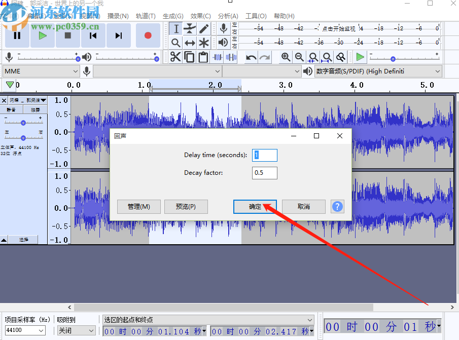 5.点击选择回声效果之后会出现下图所示的界面,我们在界面中可以对参数进行更改,不需要更改的用户直接点击确定按钮即可。