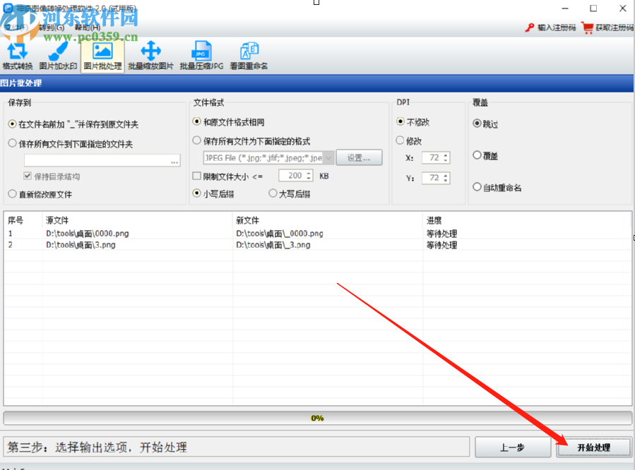 7.最后一步我们就来到输出文件的界面了,在界面中可以更改相关的参数,更改之后点击右下角的开始处理按钮即可开始批量旋转图片。