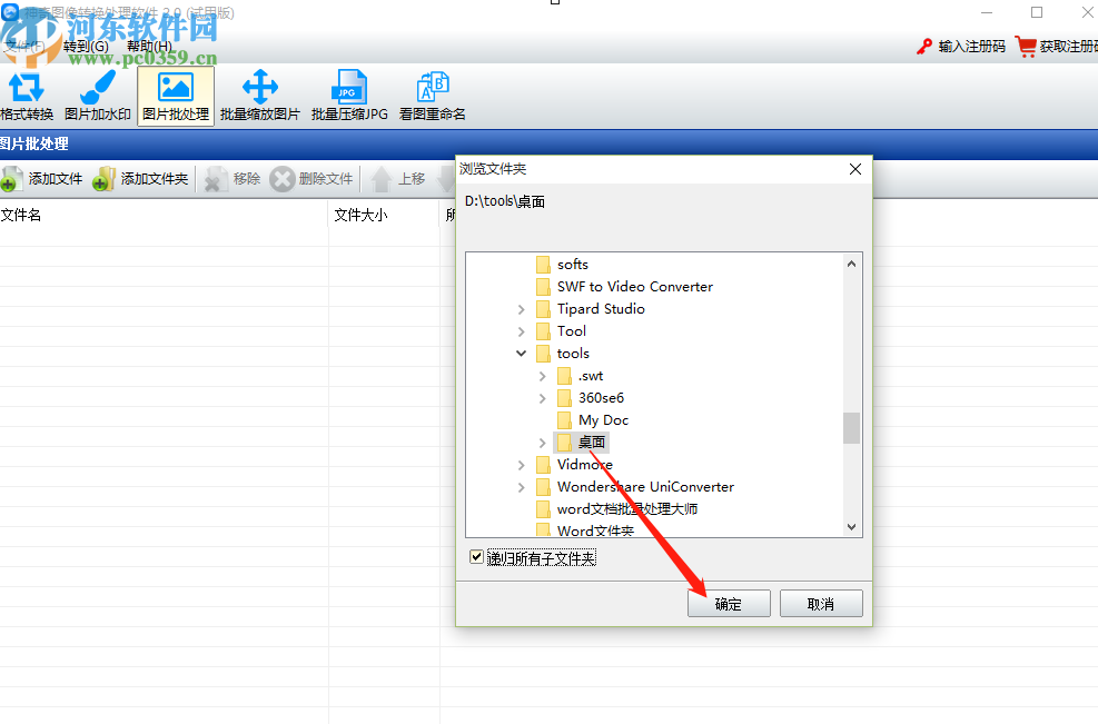 2.点击添加文件夹之后,在出现的这个选择文件夹界面中,选中要处理的图像所在的文件夹,然后点击确定按钮。