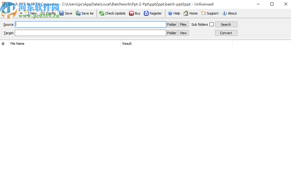 1.首先第一步我们需要点击界面中Source这个选项右边的Folder文件夹按钮,点击之后可以选择想要处理的ppt格式文件。