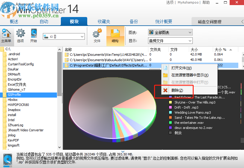4.等到扫描分析操作完成之后,我们在界面中可以看到分析出来的图表,可以查看整个磁盘中的资源占用情况。