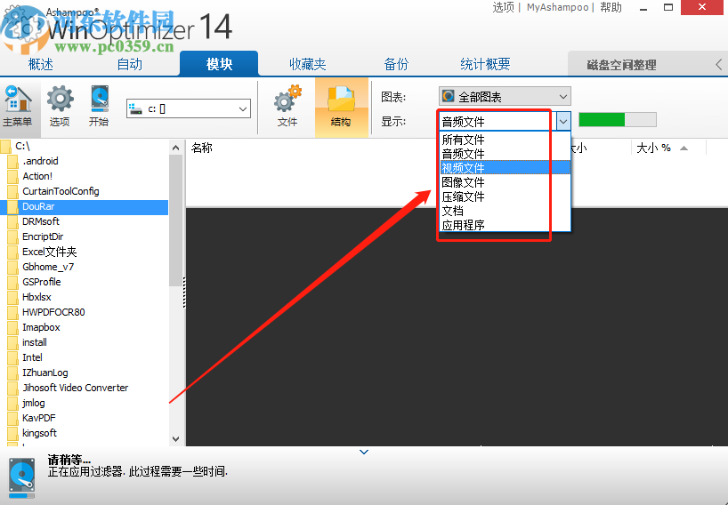 5.查看到资源占用情况之后我们还可以点击上方的文件选项,可以单独查看某一类文件中的资源占比图表。